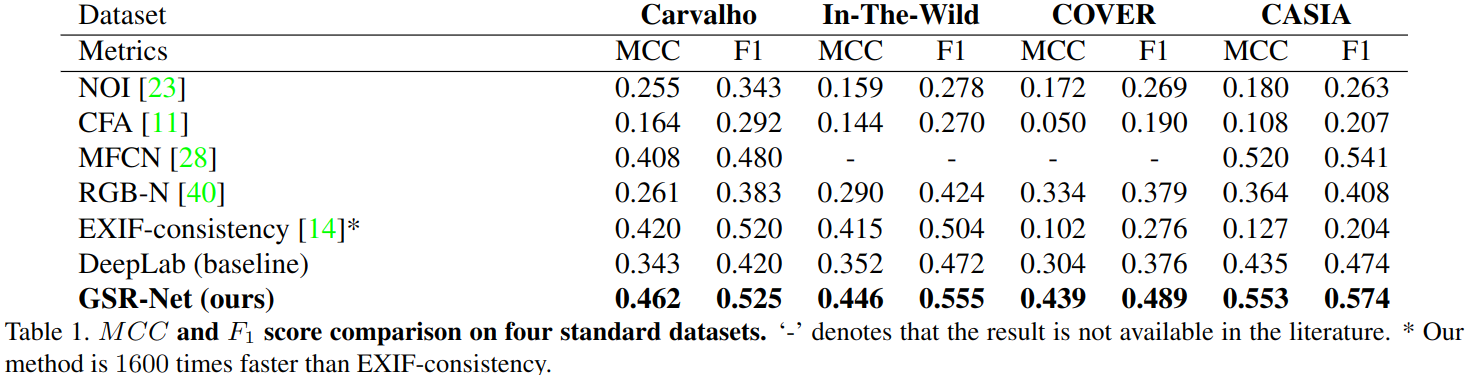 四个公共的数据集,分别是In-The-Wild, COVER, CASIA, Carvalho.