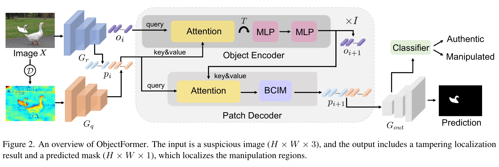 J. Wang et al., “ObjectFormer for Image Manipulation Detection and Localization,” 2022 Ieee Cvf Conf Comput Vis Pattern Recognit Cvpr, vol. 00, pp. 2354–2363, 2022, doi: 10.1109/cvpr52688.2022.00240.