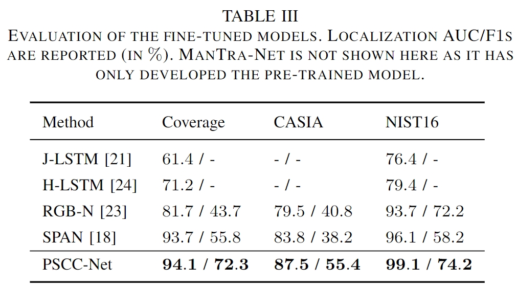 比较的方法,J-LSTM,H-LSTM,RGB-N,ManTra-Net,and SPAN.