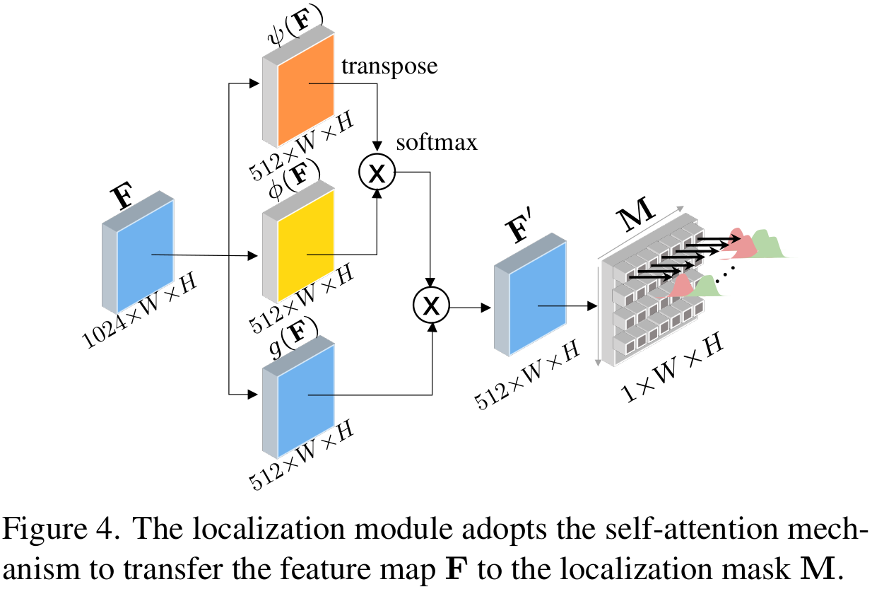 而在定位模块上,可以看到则是将Level 4 的特征图作为输入,采用自注意力模块,将计算得到的空间注意力矩阵,转换到最后的全局特征图,再同Iacopo Masi, et al, ECCV '20 一样,使用尺度学习目标函数,来产生一个更宽的边界,在真实的和篡改的像素之间;得到最后的mask。