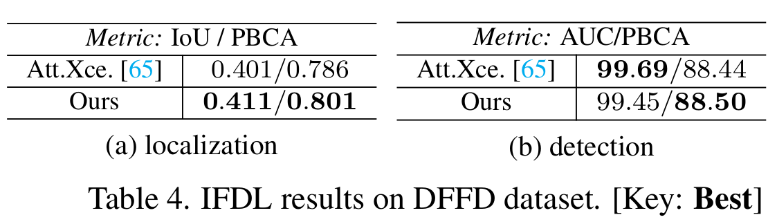 在Diverse Fake Face Datasets,多种篡改人脸数据集上的结果,主要就是用styleGAN生成的了,