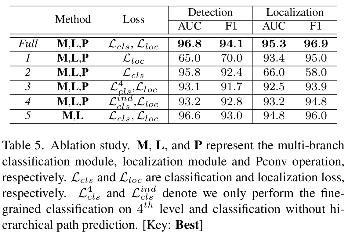 这是一篇实验很充足的论文,论文为了验证自己提出来的多标签是有效的,以及涉及到对多标签的学习所用到的多层次细粒度结构,进行了大量的实验;同时我认为文章突出的一点在于,它将传统的image editing和现阶段的深度篡改,无论是人脸,是GAN生成还是Diffusion,都整合到用一个方法进行定位,为了实现这个目标,也是提出了一个庞大的数据集,而为了证明不是因为数据集的多样性带来的好结果,作者也用其他方法使用同样的数据集来进行训练,而结果同样比不上作者提出的HiFi-Net结构,来说明这个框架的创新性。