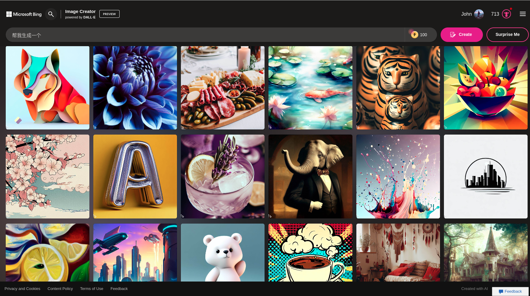 那除了人脸上的deepfake,现在我们有visual GPT,怎么去检测这些篡改,我的观点是,这些合成的图片,大多风格化比较严重,人眼一眼就能看出来图片是不是由AI生成的,他对社会的影响,远没有在文字上的篡改来的爆裂。就像下面一张,来自bing image creator官网的截图,这些由AI生成的图片一般不是用来取证的,作为证据的媒体,可能这方面的篡改,当然,他仍然在假信息传播上,是非常具有迷惑性的,所以我觉得这个问题还是需要去想想是否可以提炼出一个新的问题,新任务。