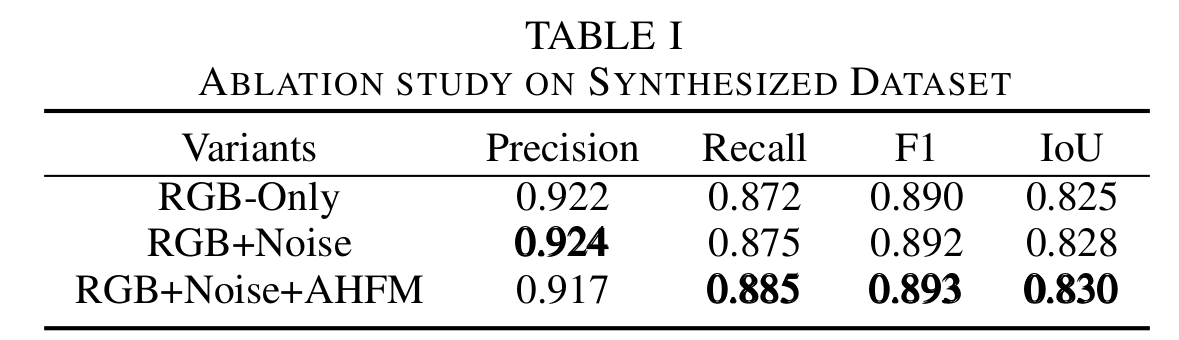 结果是挺好的,但是可能当前在篡改检测里面,这个框架,RGB再堆frequency或者用noise map的概念,已经玩了比较多了,所以文章也花比较少的力气讲为什么要这么结合,而是说我这次的结合和其他人不同,在于我只用用了Transformer,这个理由好像说得过去,又好像不那么强;还重点提到了这个两种特征结合的模块。