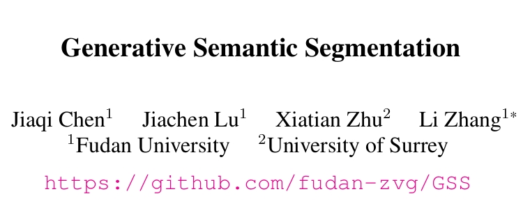 Chen, J., Lu, J., Zhu, X., & Zhang, L. (2023). Generative Semantic Segmentation. IEEE/CVF Conference on Computer Vision and Pattern Recognition (CVPR).